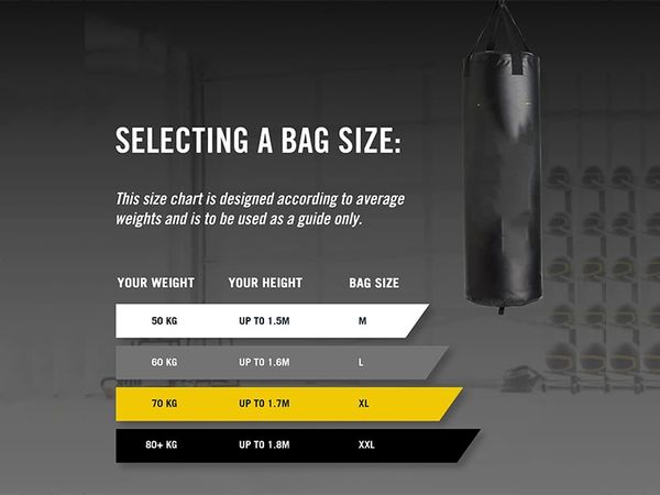 Chiều cao của bao cát nên được lựa chọn dựa trên bộ môn bạn theo đuổi và không gian phòng tập của bạn.